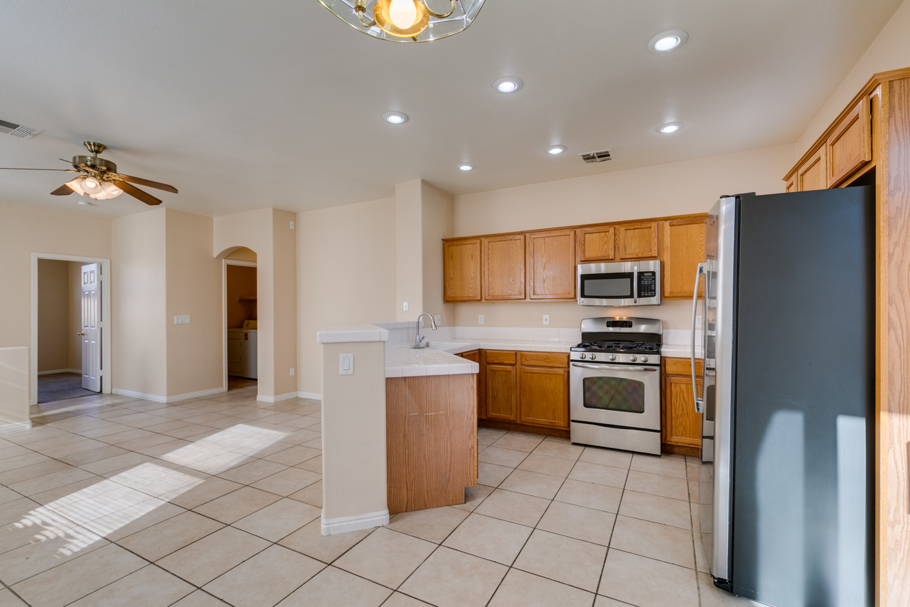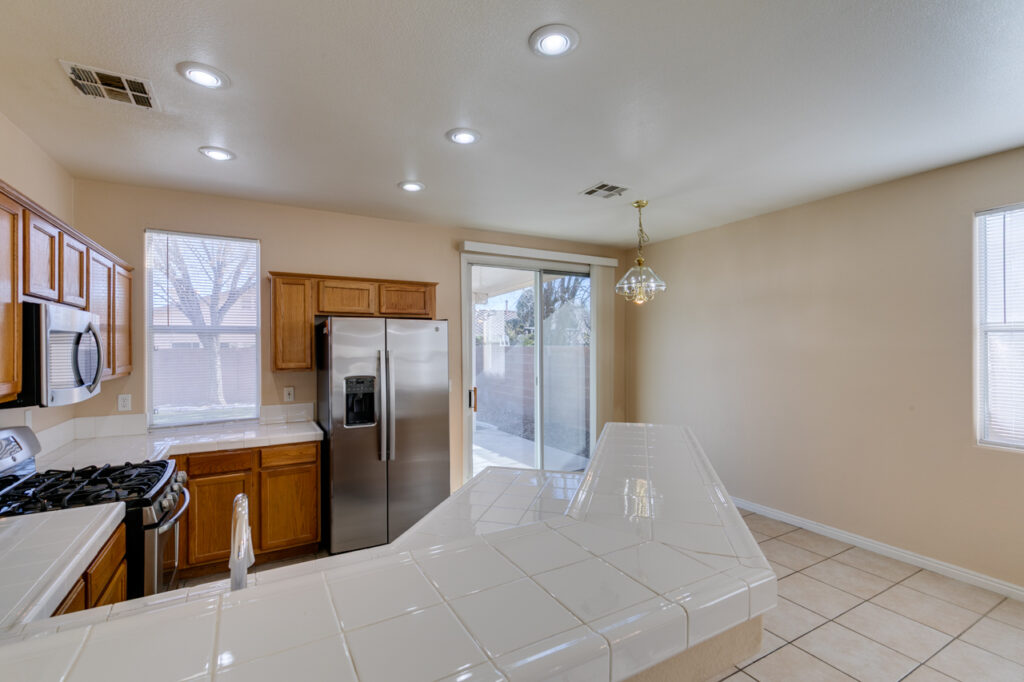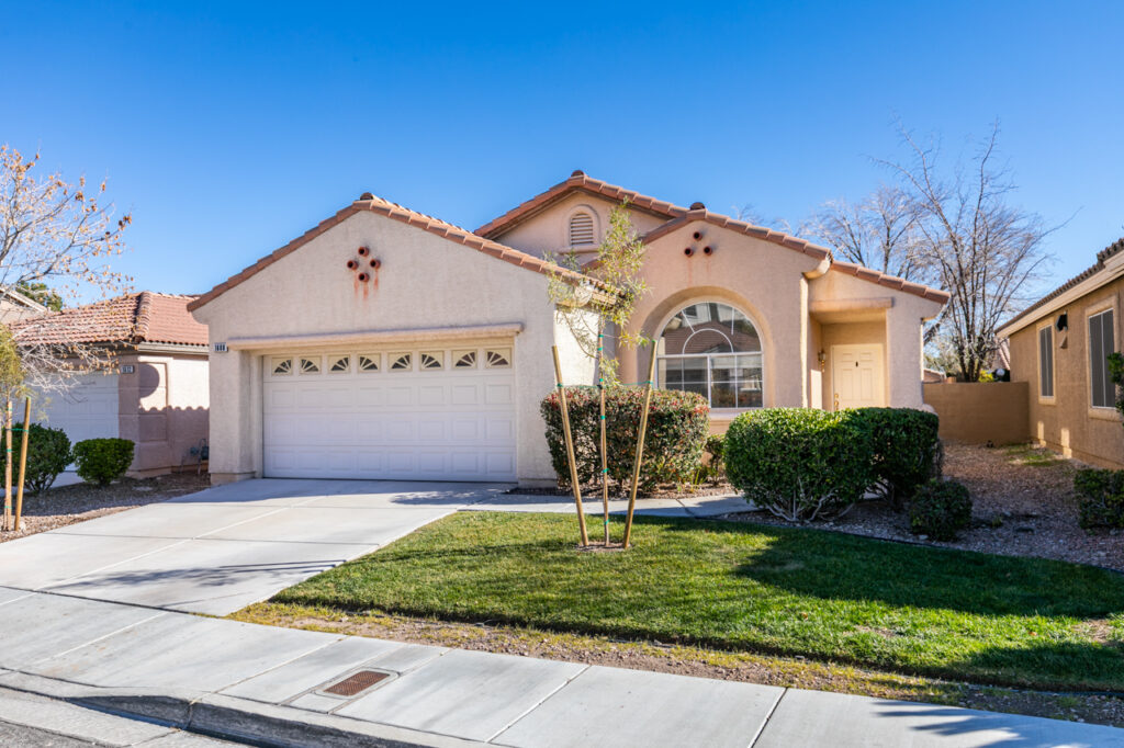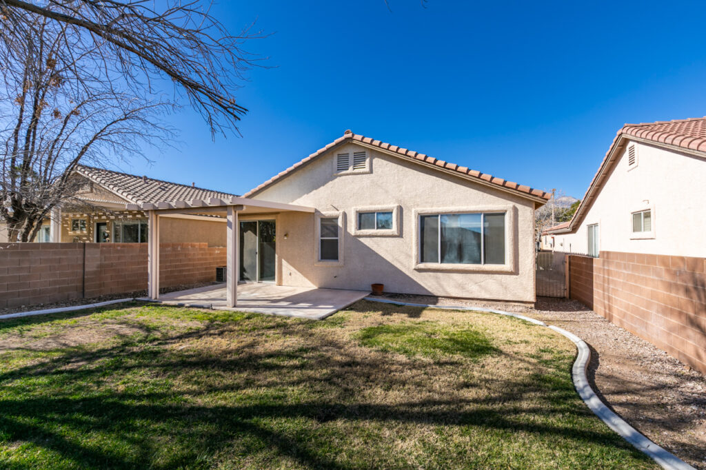 Lovely Single Story 3 Bedroom Home in the Heart of Summerlin! * Nice Open Floor Plan, w/ Neutral Paint Throughout * Carpets in Bedrooms, & Tile Flooring in Main Living Areas * Primary Suite Features Walk In Closet, En Suite Bath Features Double Sinks & Oversized Tub * Kitchen Features All Stainless Appliances, Breakfast Bar, & 5Burner Stove * Large Backyard w/ Covered Patio Just Waiting For Your Next Get Together * Don’t Miss This One, It Won’t Last!