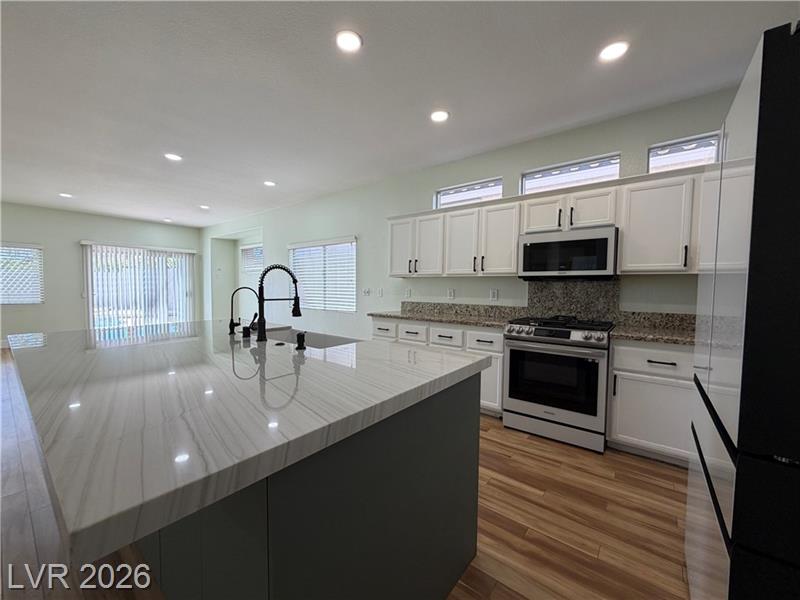 Welcome to this Beautiful 4 Bedroom Single Story Home In The Willows Of Summerlin! * This Lovely Property Features Cool Sparkling Pool & Spa In Backyard W/Water Fall Feature & Covered Patio! ** Home Interior Features Upgraded Flooring Custom Ceramic Plank Tile & MMWL Throughout& Recessed Lighting In Every Room!! ** Kitchen Features Center Island, Breakfast Counter + Eating Area, Large Farmhouse Style Sink, & Upgraded Appliances!! * Spacious Primary Bedroom W/Access to Backyard, Walk In Closet, Ensuite Bathroom Has Step In Shower, Separate Tub & Dual Sinks!! ** Nearby Schools, Shopping Centers, Parks & Freeway! Must See to Appreciate! Schedule your Showing Today!